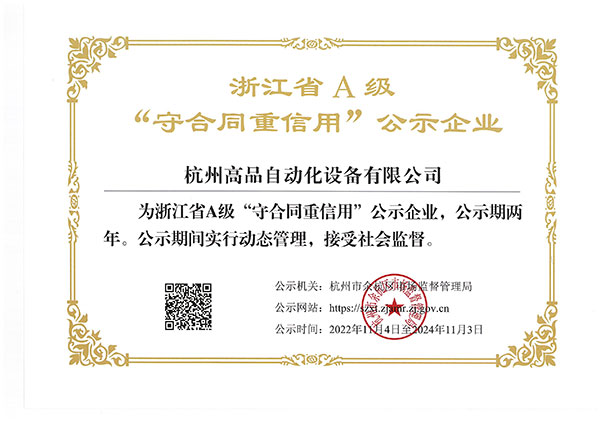 恭喜杭州高品自動化設備有限公司榮獲