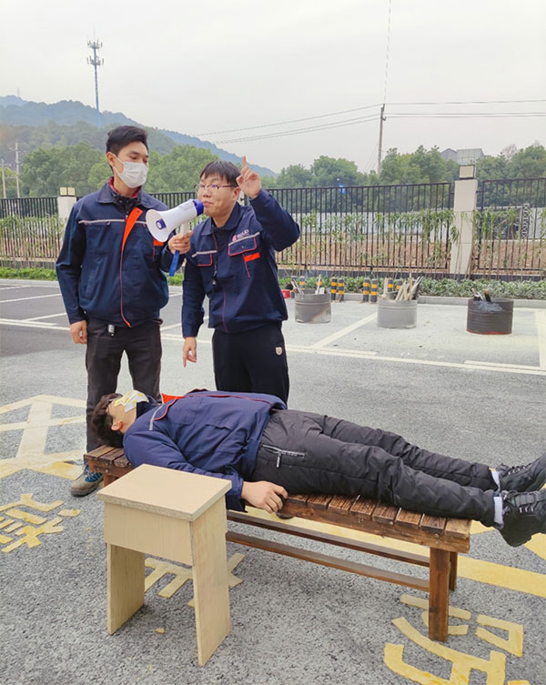 滅火器使用完畢后,安全員組織現(xiàn)場教學海姆立克急救法和胸外按壓、人工呼吸急救法。通過現(xiàn)場指導(dǎo)、錯誤示范、正確示范等多種方式相結(jié)合的手法,使抽象的平安演練變成具體的實戰(zhàn)演習,大大增強了全體員工的平安意識和自護自救技能。