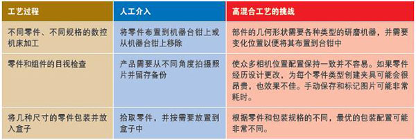 高混合生產(chǎn)環(huán)境可能難以快速改進(jìn)。理想的改進(jìn)將涉及多條生產(chǎn)線,但適應(yīng)多個(gè)工藝所需的投資可能非常大,足以顯著降低投資回報(bào)率。傳統(tǒng)的自動(dòng)化無疑是大批量或快速循環(huán)生產(chǎn)更有效的解決方案。