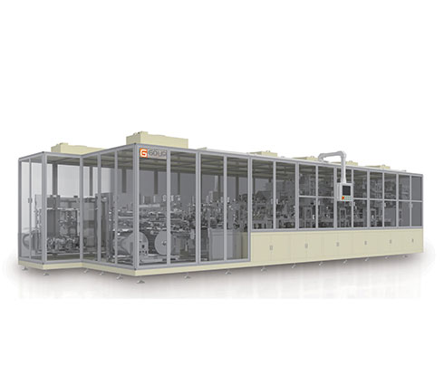 切疊一體機(jī),主要用于完成將極耳已成型的正/負(fù)極卷料自動(dòng)放卷、自動(dòng)糾偏、張力控制、CCD缺陷檢測(cè)、驅(qū)動(dòng)、V/R角沖切、裁斷、除鐵除塵、CCD尺寸檢測(cè)、NG剔除、真空皮帶輸送、CCD預(yù)定位、隔膜放卷、疊片臺(tái)按設(shè)定層數(shù)疊成電芯,同時(shí)可進(jìn)行overhang檢測(cè),隔膜裁斷后貼側(cè)膠、熱壓、貼二維碼膠、外觀檢測(cè)、緩存及下料測(cè)等功能。最終電芯裝載在托盤中,可對(duì)接自動(dòng)物流線和MES系統(tǒng)等。